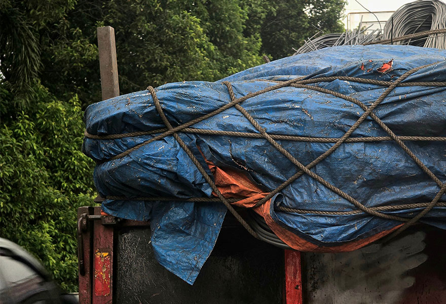 Ensure that cargo is securely fastened with straps or rope when loaded onto a vehicle. Consider covering your load with a sturdy tarp to prevent any debris from escaping while the vehicle is in motion.